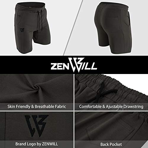ZENWILL Men’s Zip Gym Shorts Running Fitness Sports Workout Shorts Men with Pockets
