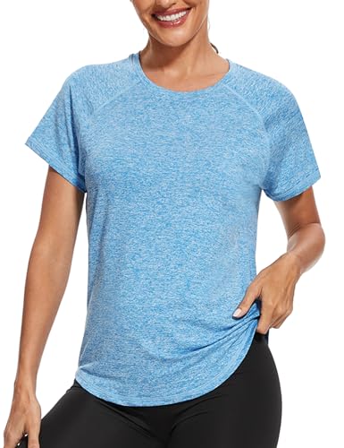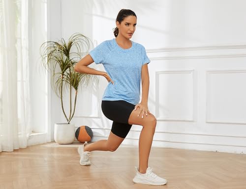 Gyabnw Women’s Sports T-Shirt Gym Tops Back Mesh Loose Fit Yoga Running Top Lightweight Moisture Wicking Crew Neck Short Sleeve for Ladies