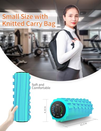 COOBST Vibrating Foam Roller Massager –Electric Foam Roller with 5 Vibration Intensities – Rechargeable Battery – Durable EVA Foam & Solid Core – Fitness, Sports, Recovery – with Carry Bag(Blue)