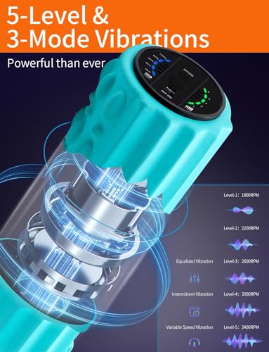 [PREMIUM BUILD & FEATURES] – Made from high density EVA Foam which is soft and pliable, yet very firm for targeted muscular and soft tissue release, this next generation vibrating roller (massage) comes with a built-in 2500 mAh rechargeable battery that can last for up to 2-6 hours, can be charged through USB-C port, shuts down automatically after 15 minutes, and features a pulse mode that rotates through all vibration levels. CE, FCC, ROHS certified.