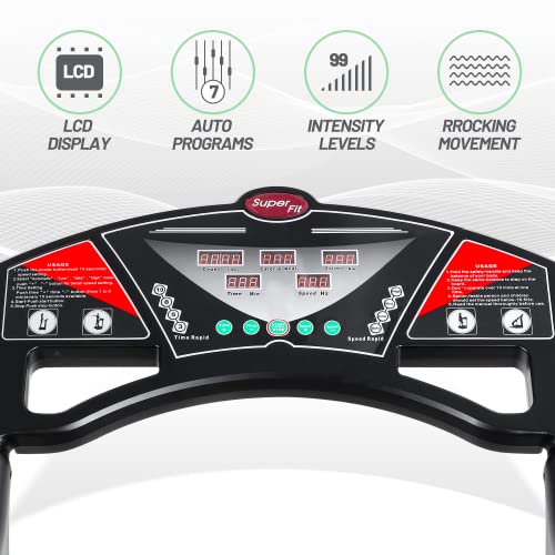 FITNESS MONITOR:99 speed and digital displays with 7 preset programs ensure the right workout intensity for each user, while an easy-to-operate LED display shows mode, time, speed and BMI for easy monitoring of your vibration Platform exercise sessions and fitness Level.