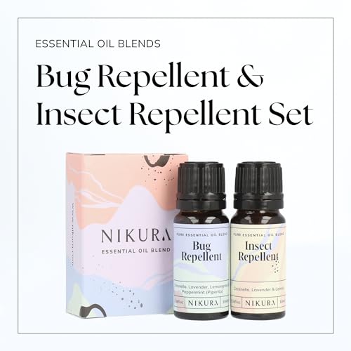 Nikura Bug Repellent & Insect Repellent (2 x 10ml) Essential Oil Blends Combo Set | for Aromatherapy, Soap and Candle Making, Diffusing, Vegan, 100% Pure and Natural