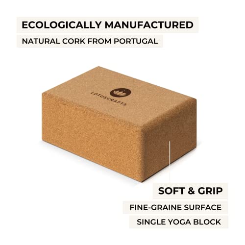Lotuscrafts Yoga Block Cork Supra Grip – Ecologically manufactured – natural cork from Portugal – Yoga Brick – Cork Yoga and Pilates Block – Essential Yoga Equipment – Support Yoga Poses